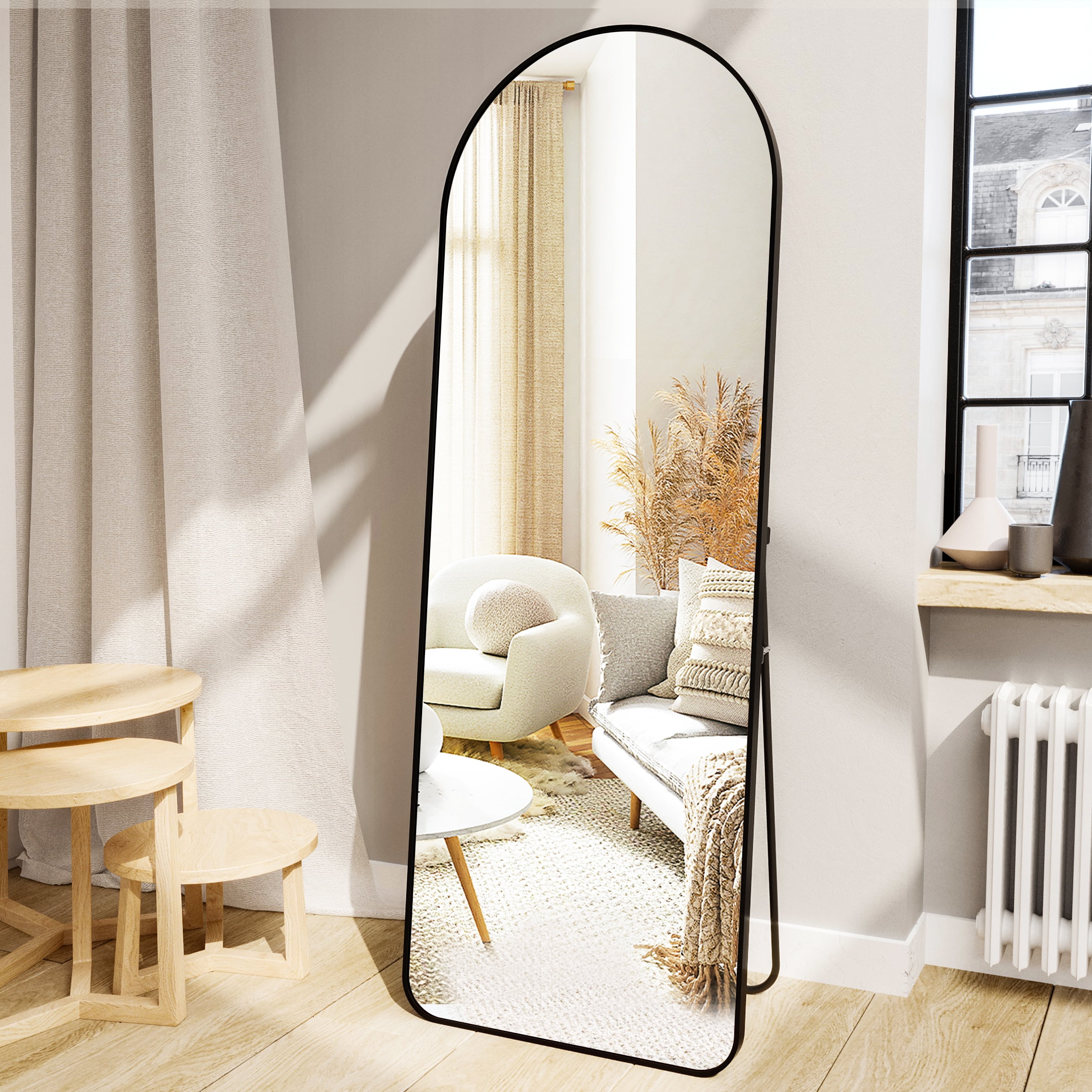 . Modern Arched Framed Black Full Length Mirror. SIMPLE INSTALLATION Free standing wall. ARCHED DESIGNPlace an arched full length mirror on the house like a door to make the room of the house look more interesting.